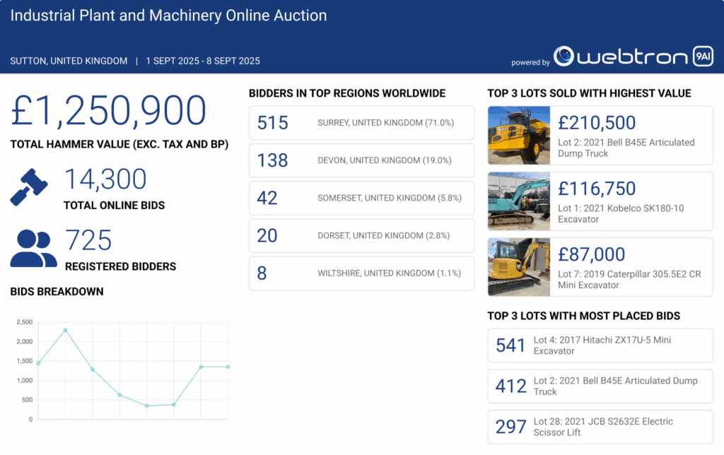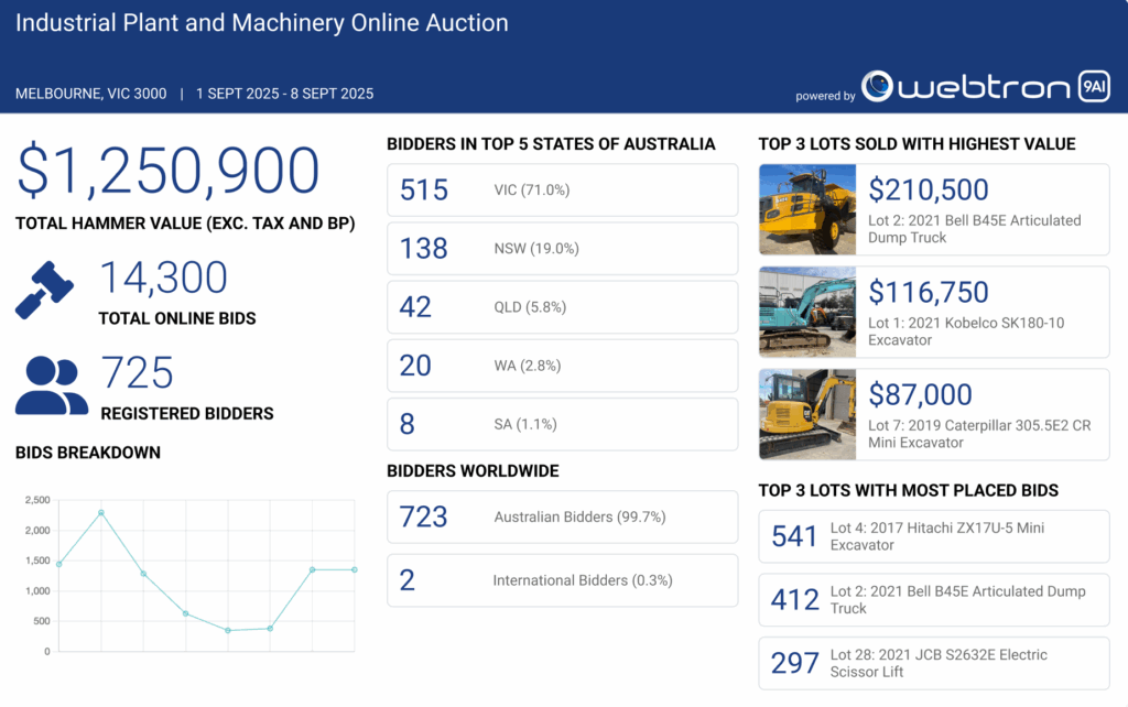 Webtron helps auctioneers expand their reach beyond local buyers to attract bidders from across the country and even internationally. It streamlines the entire clearing sale process, reduces administrative workload, and provides powerful reporting and analytics. For buyers, the software delivers a transparent, convenient, and accessible way to participate in auctions remotely.